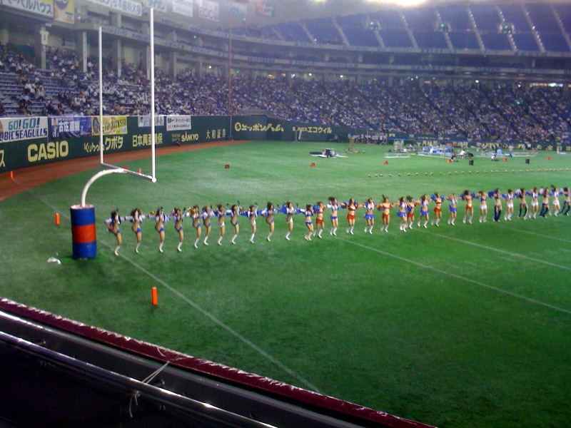 東京ドームでXリーグチアリーダーみんなで肩を組み、ラインダンス。