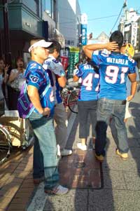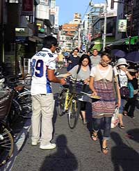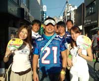 最後は選手、チア皆で商店街へお買物に来ていたお客様へ、「うちわ」を配りました!