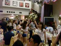 選手もチアも、練習後だった為、どんどん出てくる食事に夢中☆