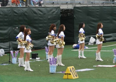 次戦も、チアリーダーはマイク1本で応援に臨みます。