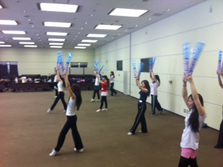 ウォーキング、アームモーションなどチアダンスの動きを少しレクチャー。