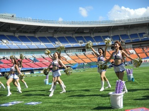 私にとっては、初めての太陽の下でのサイドライン、場外ステージとハーフタイムショーデビューと、
