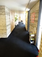 木の温もりが感じられる明るい廊下、など病気のお子さんやご家族が少しでも安らげるよう、