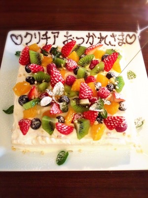 『クリチアお疲れ様』のメッセージ入りケーキが運ばれ、一同感動!