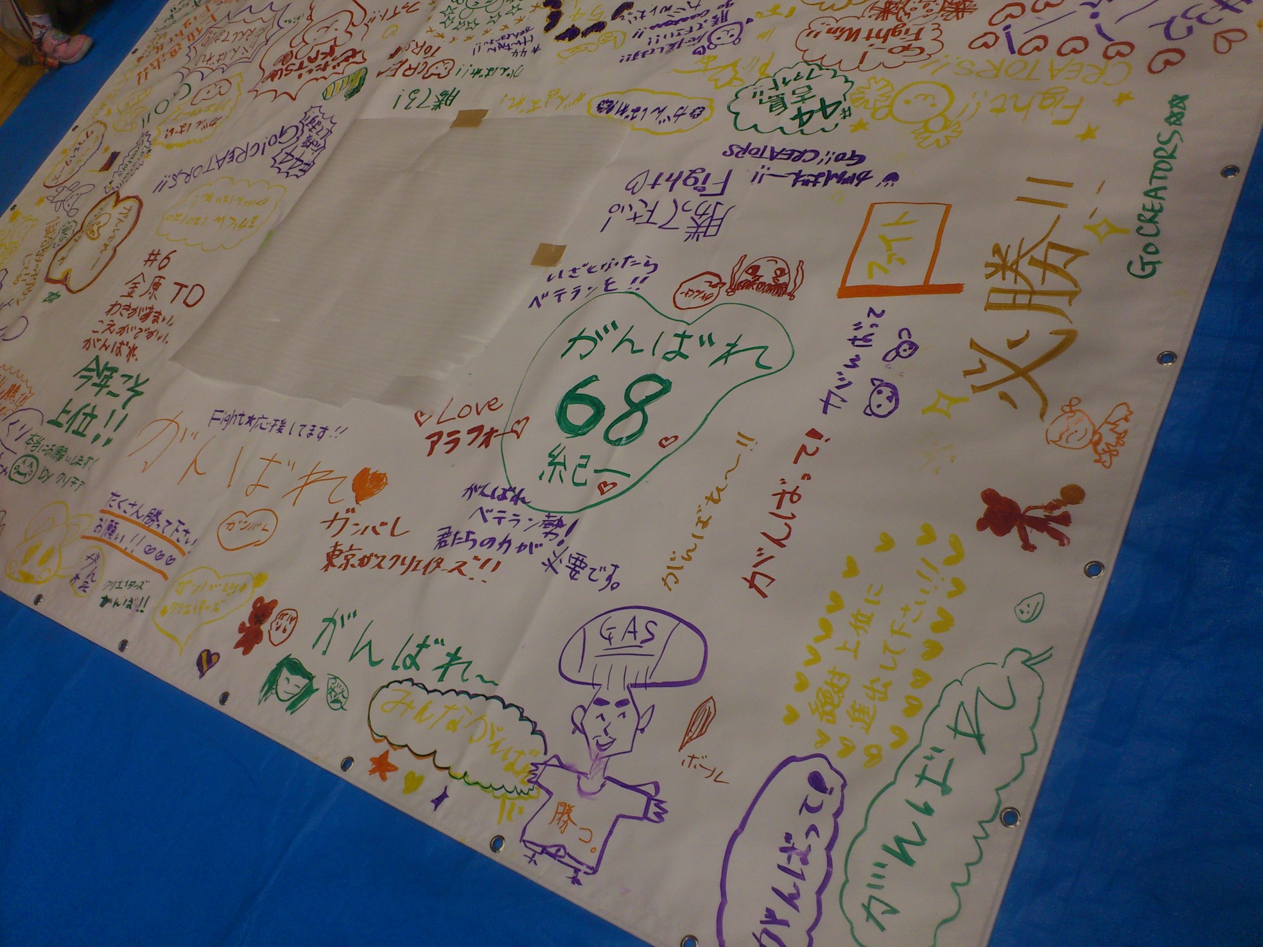 こちらの横断幕、よく見るとメッセージだけでなく可愛らしい絵もたくさん☆