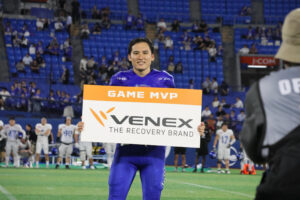 最終スコア<34−9>で快勝、競合IBMを相手に幸先良いスタートを切った。本試合のMVPとして、大活躍のQB#16徳島選手が選出され、さらに開幕戦全6試合を通じたリーグの第1節のMVPにも、徳島選手(オフェンス部門)、森上選手(スペシャルチーム部門)の2名が選出された。
