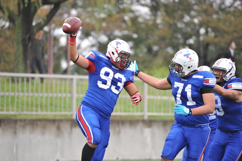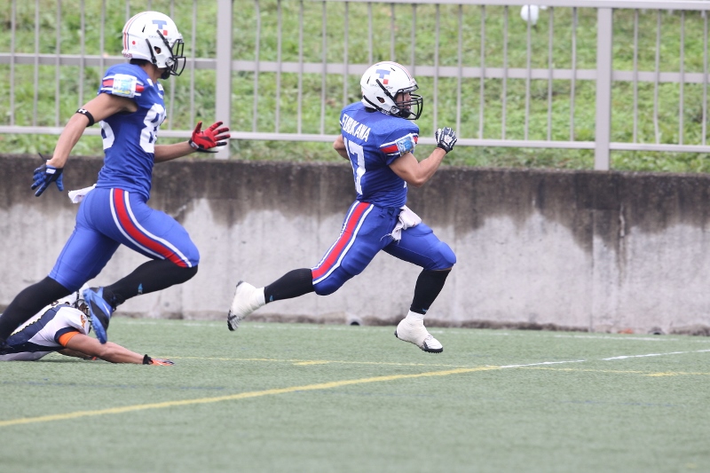 今シーズンはなかなかタッチダウンを取れない試合が続きましたが、やっと主将の活躍と笑顔を見ることができました!