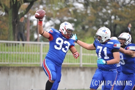 手塚選手は3本中2本のタッチダウンを決めました!