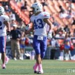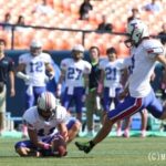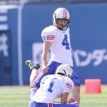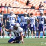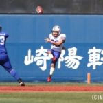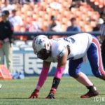 #88WR岩越選手と#77OL鈴木選手は赤白のスマイルソックスを履いてチャリティー活動のお手伝いをさせていただきました。