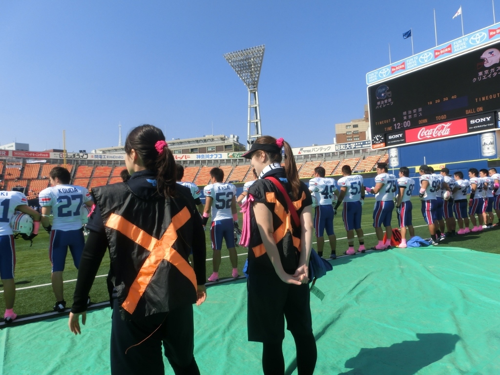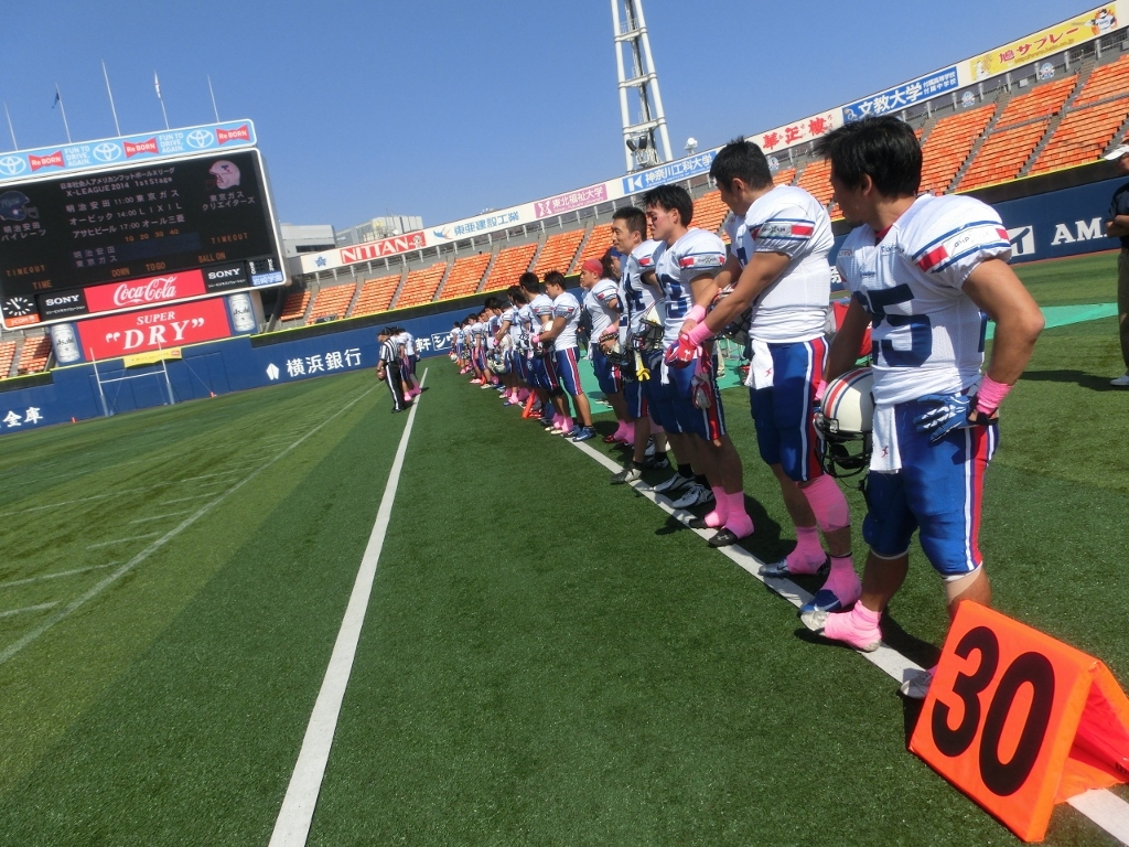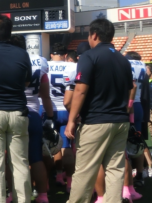 今回初めてピンクリボン運動促進をサポートするためにピンク色のグッズを身に着けて試合を行いました。