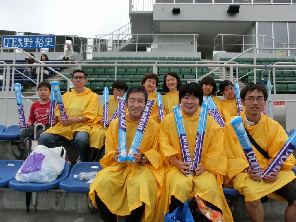 あいにくの天気でしたが、皆さんでお揃いの黄色いポンチョを着て、たくさんのご声援をいただきました。