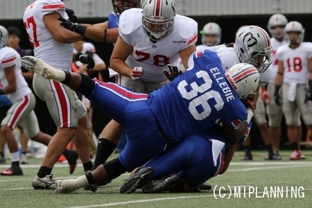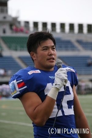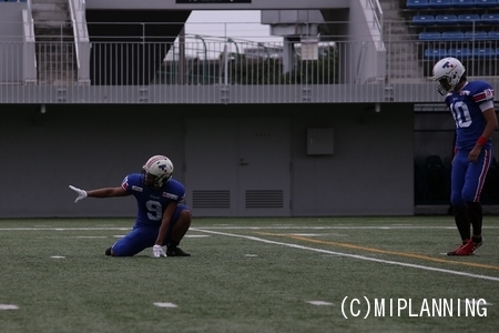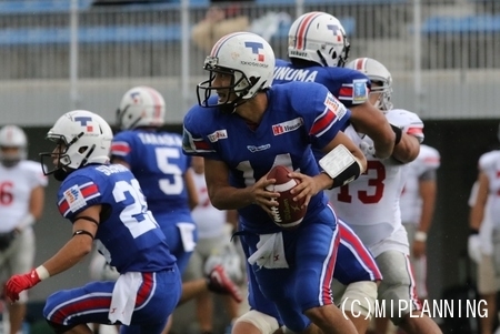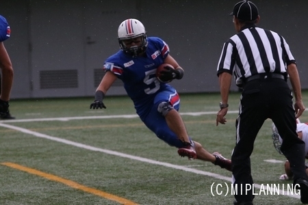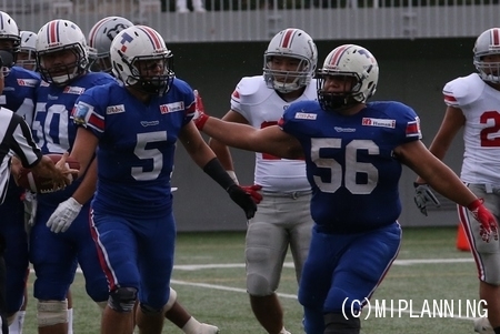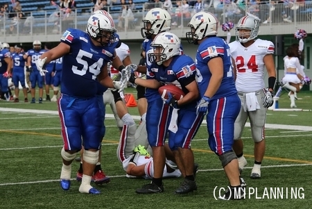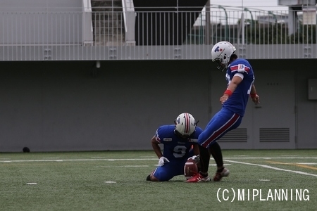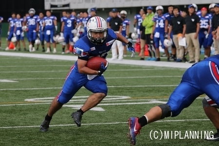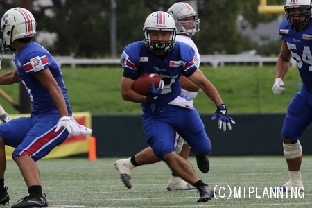 #8QB徳島の14yd、7ydランなどでレッドゾーンに入り、最後は#37RB萩野谷の5ydランでタッチダウンを奪う。【10-0】
