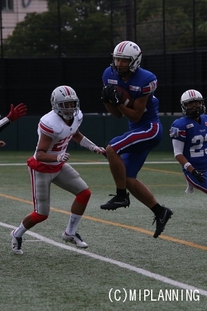 そして#14QB室田から#5WR高岡への32ydパスが成功しタッチダウン。【30-0】