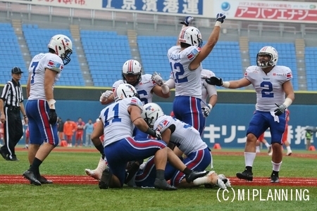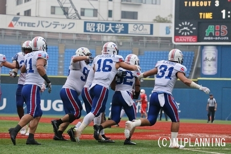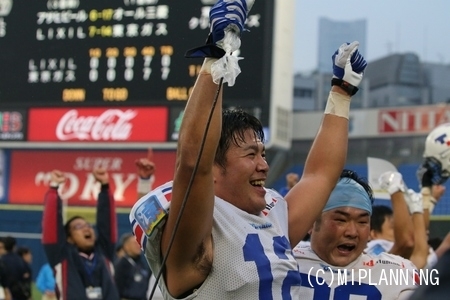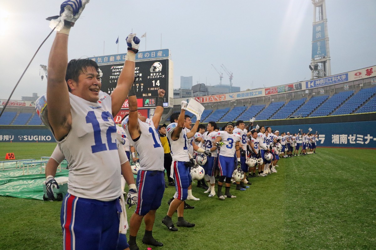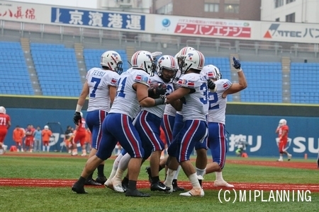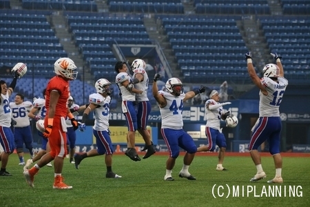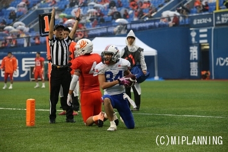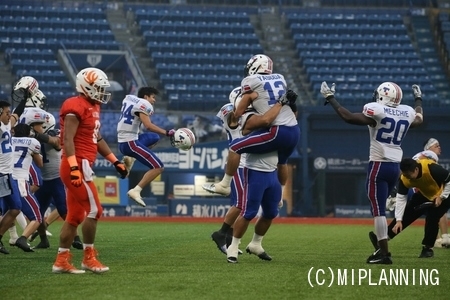 最後の最後で#27RBアンドレ選手のタッチダウンラン、タイブレークでの#6QBイカイカ選手から#84WR荻原選手へのタッチダウンパスで最高の白星を勝ち取ることができました。