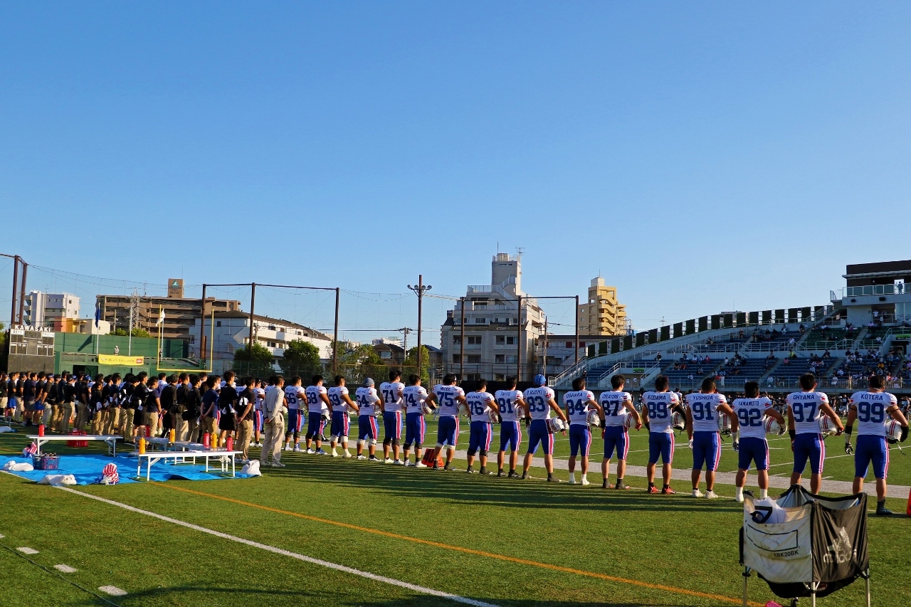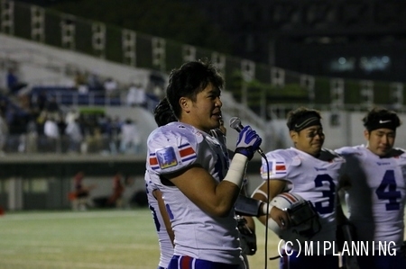 本日もミスが多く、「また逆転されて負けるのか・・・」と思ってしまう場面も多々ありましたが、やっと勝利を手にすることができ、最後は#12LB安田主将の最高の笑顔を見ることができました。