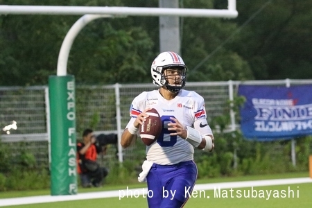 エレコム6回目の攻撃はQB#19からWR#7へのパスが3回連続決まり、その後も#19のパスが決まり、最後は#19からWR#21への1ydのパスが決まりタッチダウンを許す。#12のキックも決まり【10- 21】となる。