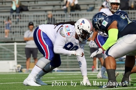 第2Qに入り、クリエイターズはオフェンスドライブを継続。しかし#27RB アンドレのランと#6QBイカイカのパスで ダウン更新を狙うも決まらず、クリエイターズのパントキックで攻撃権を放棄。