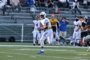 クリエイターズは2シリーズ目で#5QBジェロッドから#8WRナムディへ55ydパスが通りタッチダウン。【27-13】