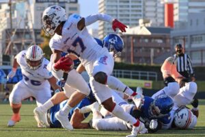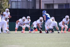 ビッグブルーは後半最初の攻撃で#2QB政本から#21RB佐藤への18ydパスでタッチダウン。【13-20】