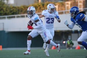 ディフェンス陣のビッグプレイにオフェンス陣がしっかりと応え、#5QBジェロッドから#8WRナムディへ10ydパスが成功し再逆転をした。【23-20】