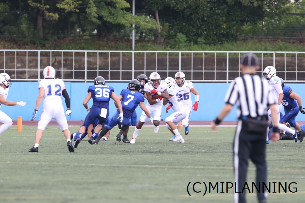 第2Q終了間際にインパルス#33RB横田の2ydランでタッチダウンとなり【0-44】で前半終了。