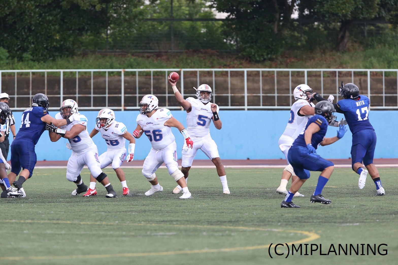 開始早々インパルス#12QB荒木から#26RB藤本へロングパスが成功。