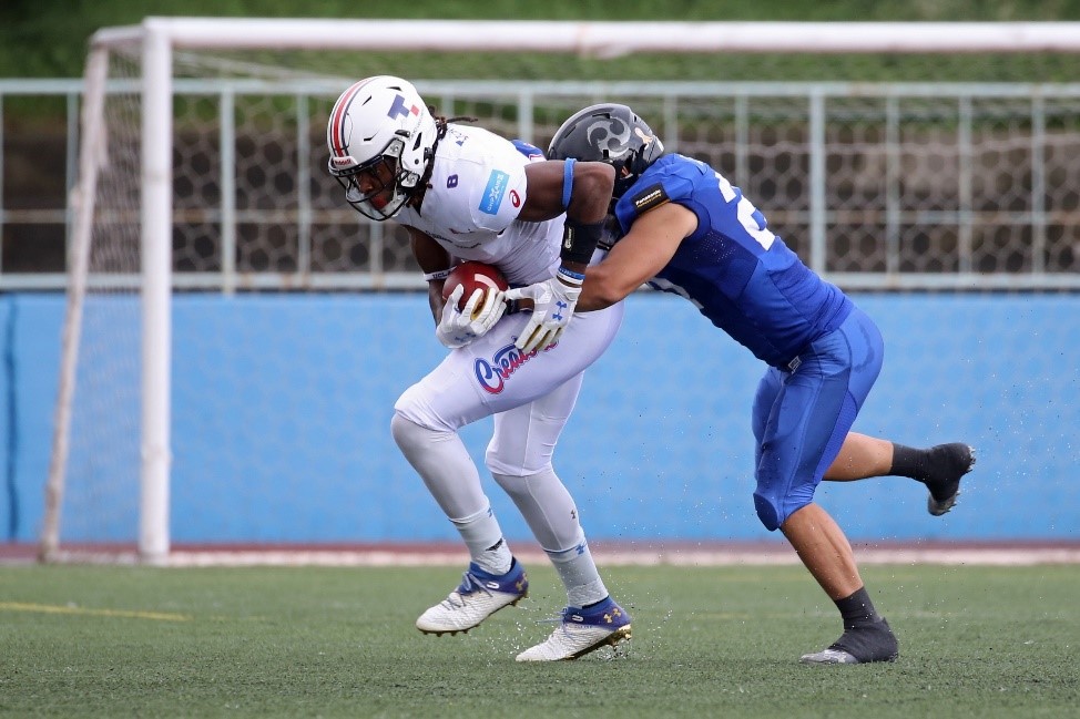 クリエイターズDBが2人タックルに入るがかわされてしまい、そのまま走りきられタッチダウン。【0-64】