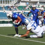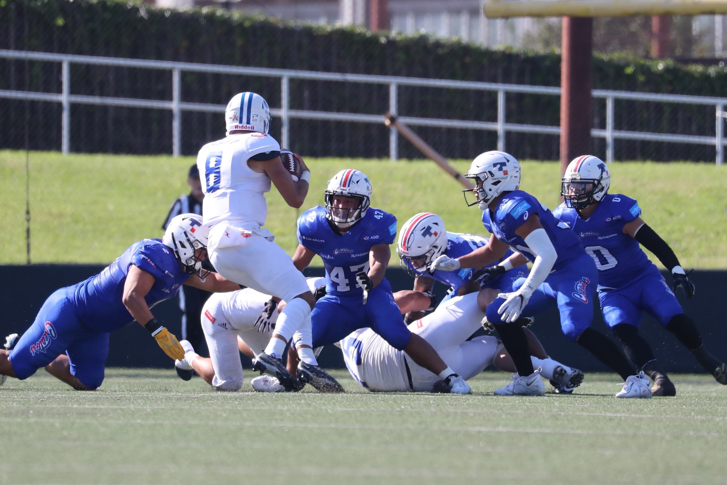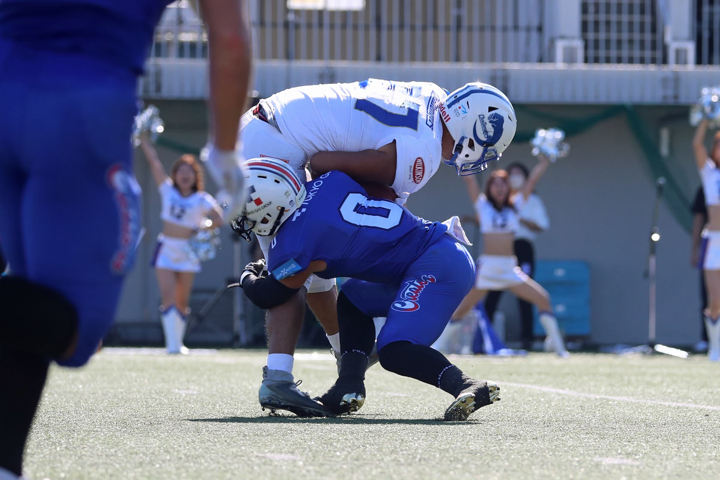 5プレイ目で#19QB是澤から#7TE小山への8ydパスでタッチダウンを奪われる。【0-10】
