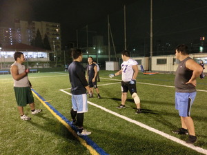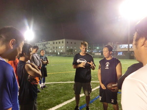 今日のハドルの通訳はルーキーの慶應出身、石井選手です。