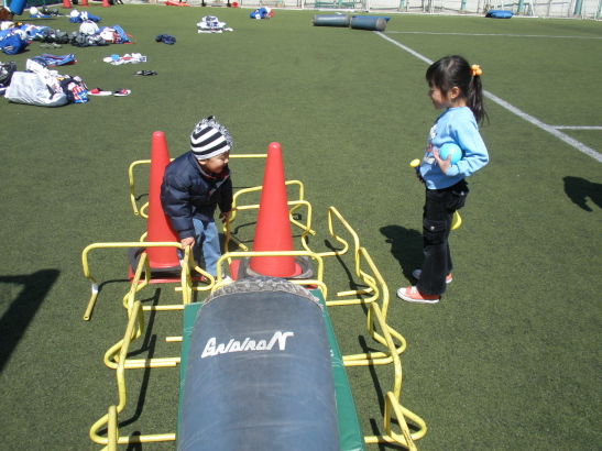 今はまだ練習も短く、試合前の様に長いミーティングもしないため、数名の選手、コーチが可愛い愛息子、愛娘を連れてきまてます。