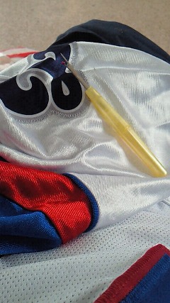 ユニフォームを傷つけないように慎重にちくちく・・・ちまちま・・・。
