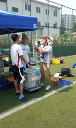 選手達は練習前の準備をしている時からすでに汗だくでした。練習中はブレイクごとにすかさず梅干し登場です。