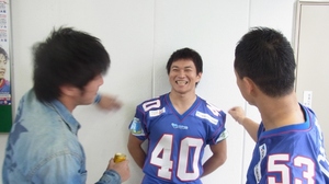 #39RB坂井選手の撮影時にスタイリストぶりっこする#5RB櫻井選手と#28RB小林選手。