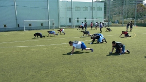 いつもより人数が多かったので、いつもと違う広いスペースを使って練習していました。