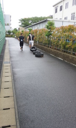 でも気温も湿度も高く、不快指数はかなり高かったです。今日の写真はタイヤ引きの様子です。