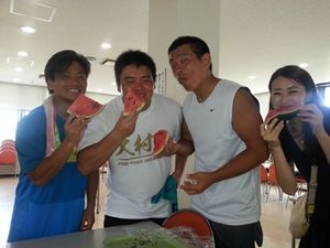 食堂に戻ると松田部長からの差し入れのスイカが用意されていました。