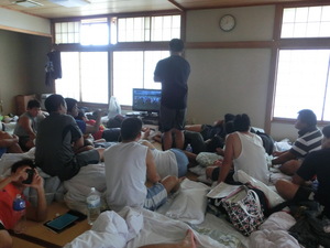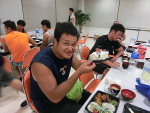 グランドを引き上げ、シャワーをあびた後は夕食です。