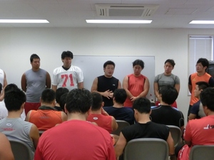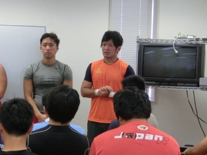 練習前の全体ミーティングで、今日は#17古川主将の指名により新人選手が今シーズンへの意気込みや練習に対する思いを語ってくれました。