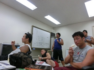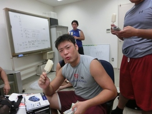 練習後のミーティングでは、DL全員でアイスを片手にビデオチェック。