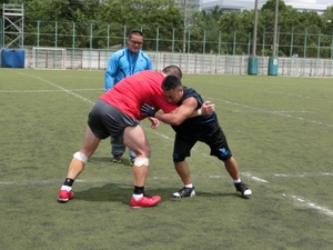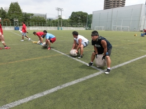 ベテラン#12QB田選手も砂袋を両手に激走してました。