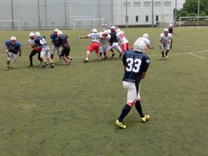 オフェンスラインの方々は、互いの写りを笑ったり指摘したりと一番盛り上がっていました。