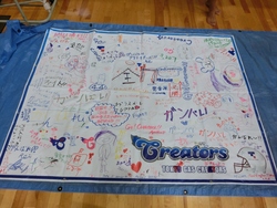ダンスのお披露目後はキッズチアリーダーの皆さんが書いてくれた応援旗をいただきました。