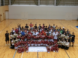 今日はキッズチアリーダーの声掛けで選手達が一緒に「C」マークを作りました。