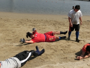 負けたチームは身体を一直線にして砂浜をゴロゴロ・・・