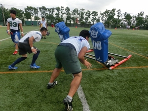 練習は9時スタートです。フィールドゴールの練習から始まりました。