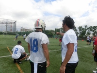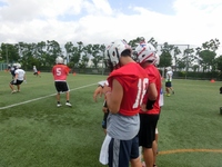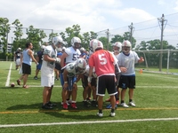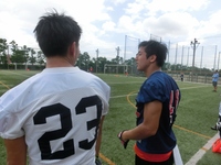 ユニット練習中のQBです。#12中本選手はサンバイザーをかぶり、日除け?オシャレ?をしてました。