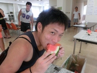 クラブハウスに戻ると松田部長からの差し入れのスイカが並んでいました。