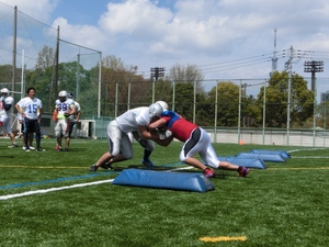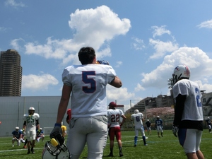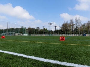 とてもフカフカの人工芝でアメフト用のラインもすでに引いてあります。