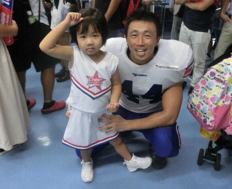 試合後、#44TE吉島選手はキッズチア初参加の愛娘と記念撮影。
