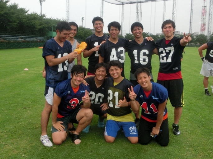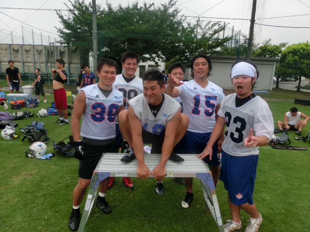 (#13細野選手、#33平野選手、#12LB安田選手、#43LB杉山選手、#16松本選手、#27幸田選手、